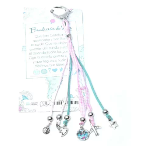 Bendición pensada especialmente para poner en tu bolso o cartera de viaje♥ Queremos acompañarte en tus aventuras!! El producto trae un gancho con cueros, cintas e hilos, con varios dijes: San Cristobal que es el patrono del viaje para que te acompañe, San Benito para que te cuide, una llave para que se abran todas las puertas del mundo, el corazón para que recibas el amor de todos los pueblos, una estrella para que te guíe en tu camino y la cruz para que siempre te acompañe♥