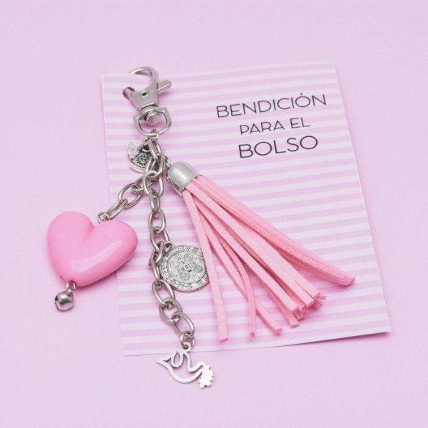 Bendición ideal para regalar! Es un producto súper versatil. Se puede usar como llavero, para colgar de una cartera o mochila. Es genial si tenes que hacer varios presentes, podes llevar de distintos colores. Esta bendición siempre trae un gancho, con dijes de Espíritu Santo, Ángel de la Guarda y San Benito, además de un dije de acrílico que puede variar. Incluye: Bendición + Envase reutilizable con una hermosa tarjeta♥